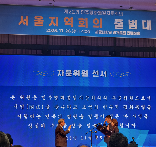 민주평화통일자문회의(민주평통) 서울지역회의가 지난 26일 세종대 광개토홀에서, '평화통일 공감대 확산'과 '국민주권정부의 헌법적 개편 및 혁신'을 핵심 목표로 내걸고 제22기 활동을 시작했다. 특히 이번 회의에서는 이재명 정부의 대북정책 기조인 'END(교류/Exchange, 관계 정상화/Normalization, 비핵화/Denuclearization) 구상'을 한반도 평화 구축을 위한 핵심 로드맵으로 공식화해 주목받았다.
