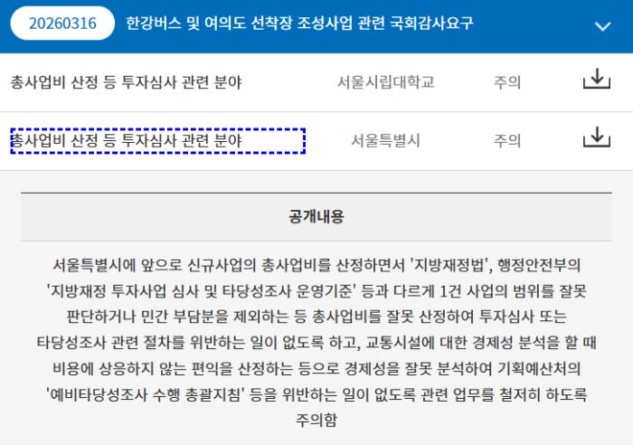 이번 감사 결과는 한강버스 사업이 단순한 행정 절차상의 미비를 넘어, 사업 구조 설계 단계부터 투자심사 회피와 경제성 확보를 동시에 겨냥한 ‘설계된 사업’일 가능성을 제기한다.