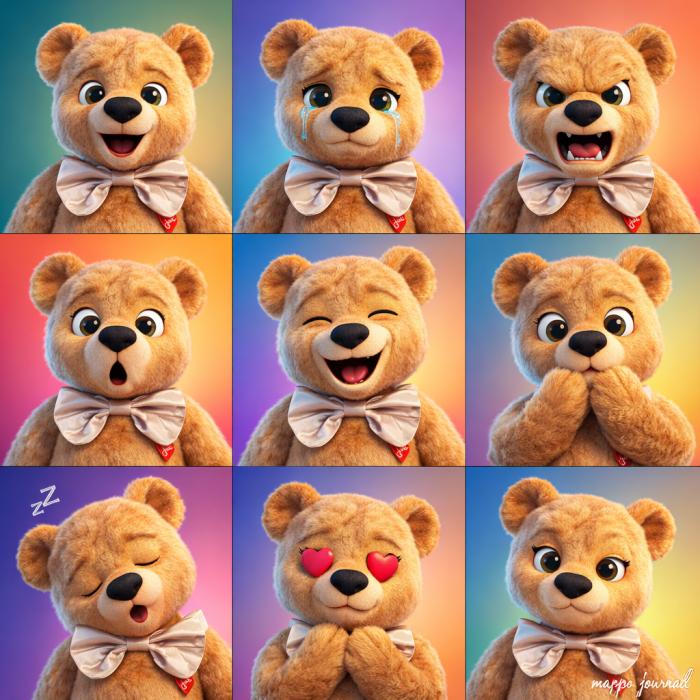 [첨부된 이미지]를 기반으로 동일한 인물의 얼굴 특징과 정체성을 정확하게 유지한 3D 카툰 아바타를 생성한다. (얼굴 형태, 눈, 코, 입, 헤어스타일, 비율을 변형 없이 유지, 성별 특성도 그대로 반영) 전체 구성은 3x3 그리드이며, 하나의 동일한 캐릭터가 9개의 서로 다른 감정을 표현한다. 우측 하단에 "mapo journal"필기체. 스타일: 픽사 스타일 3D 애니메이션 캐릭터 현대적인 이모지 스타일 디자인 크고 표현력 있는 눈, 부드러운 피부 질감 성별에 따라 자연스러운 분위기 유지 (남성/여성 모두 가능) 구성 및 연출: 3x3 균형 잡힌 그리드 레이아웃 각 패널마다 서로 다른 컬러 그라데이션 배경 깔끔하고 정돈된 구성 조명 및 렌더링: 부드러운 스튜디오 조명 자연스러운 그림자 매끄럽고 고급스러운 3D 렌더링 퀄리티: 초고해상도 (8K) 선명하고 생동감 있는 색감 디테일 강조.