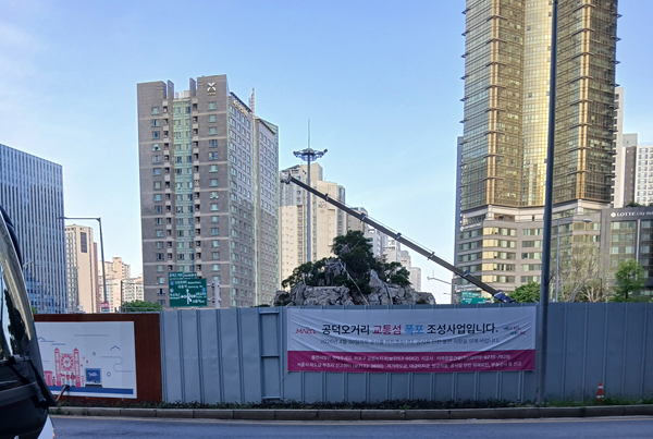 [photo] 이번엔 돌이구나... 공덕오거리 장막 걷힌 오늘 아침 풍경