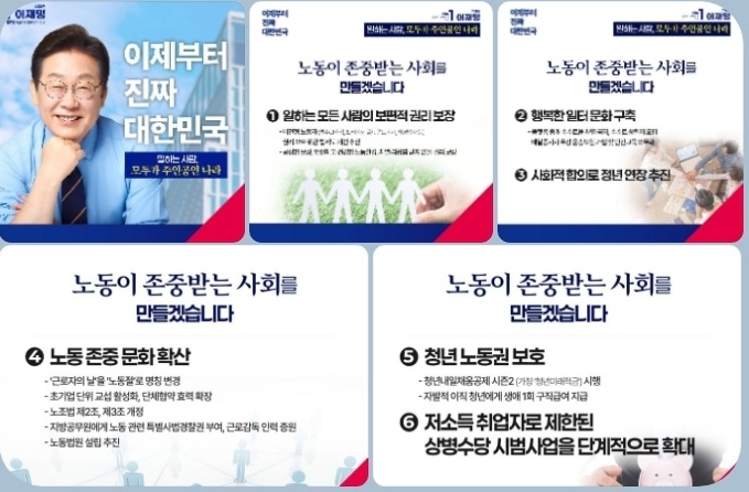민주당 이재명 후보의 노동공약더불어민주당 이재명 대선 후보가 제135주년 노동절을 맞아 “일하는 사람이 주인공인 나라, 노동이 존중받는 사회”를 만들겠다고 밝혔다. 이 후보는 이날 노동절 메시지를 …