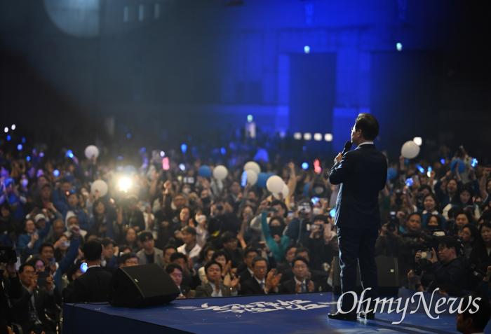 이재명 더불어민주당 대선 경선 후보가 26일 광주 김대중컨벤션센터에서 열린 호남권 순회경선에서 88.69%를 득표하며 압승을 거뒀다.민주당은 이날 합동연설회를 열고 권리당원·전국대의원 투표 결과를 발…