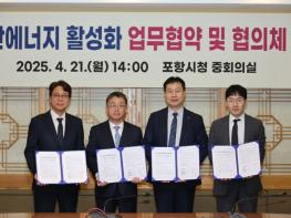 포항시는 21일 GS건설, HD현대인프라코어, 아모지(AMOGY)와 함께 ‘포항 분산에너지 활성화’를 위한 업무협약을 체결했다.이날 협약식에는 장상길 포항시 부시장을 비롯해 이정환 GS건설 신사업추진부문장,