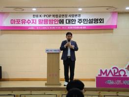 서울시 마포구는 9월 30일 오후 용강동주민센터에서 마포유수지 한류 케이팝(K-POP) 복합공연장 조성사업 변경과 관련하여 주민설명회를 개최하고, 공연장 대신 주민 생활밀착형 체육문화복합시설을 새롭게
