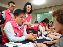 박강수 마포구청장은 7월 7일 오전, 상암동 실뿌리복지동행단의 특화사업인 ‘상암 사랑e음’ 어르신 뷰티케어 행사에 참석하기 위해 상암월드컵파크1단지아파트 경로당을 방문했다. 실뿌리복지동행단은 복