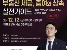 마포구는 12월 12일 오후 7시 마포중앙도서관 마중홀에서 맞춤형 평생교육 효도학교 5기 플러스 특강인 ‘모르면 손해보는 부동산 세금, 증여와 상속 실전가이드’를 개최한다.이번 특강은 부동산 세금, 증