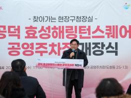 박강수 마포구청장은 12월 3일 오후 5시, 공덕역 10번 출구 앞 광장에서 열린 ‘공덕 효성해링턴스퀘어 공영주차장 개장식’에 참석해 시설 개장을 축하했다. 이번에 문을 연 공덕 효성해링턴 스퀘어 공영