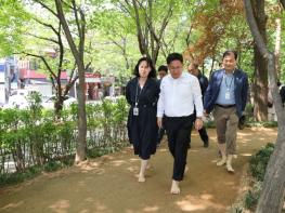박강수 마포구청장은 28일 오후, 토정공원(도화동 555-1)에서 열린 ‘토정공원 맨발 황톳길’ 개장식에 참석했다.이번 ‘토정공원 맨발 황톳길’은 마포역 인근 빌딩 숲 사이에 조성되어 도심 속에서 자연을