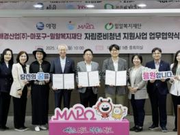 마포구는 4월 28일 마포구청 중회의실에서 애경산업(주), 밀알복지재단과 함께 ‘자립준비청년 지원사업’ 추진을 위한 3자 업무협약을 맺었다.이번 협약은 민·관·기업이 함께 만들어가는 나눔 생태계를 조