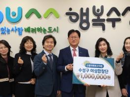 대구시 수성구여성합창단(회장 성언주) 단원들이 14일 수성구청을 방문해 산불 피해 지역 주민들을 돕기 위한 성금 100만 원을 전달했다.이번 성금은 최근 경북 지역에서 발생한 대형 산불로 인해 피해를 입