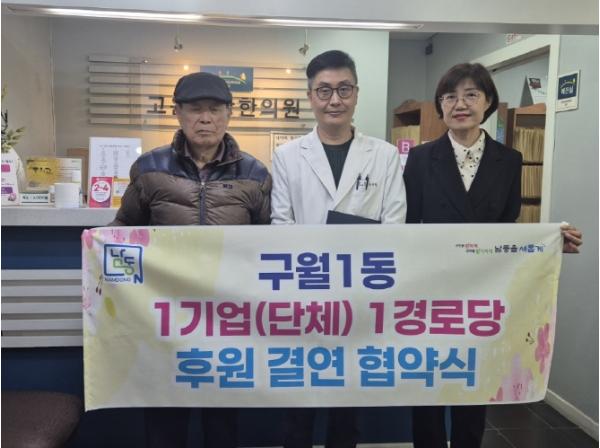 인천시 남동구 구월1동 행정복지센터는 ‘고운사랑한의원(원장 송승엽)’이 ‘대구월경로당(회장 이용복)’과 자매결연을 맺고 후원을 진행한다고 15일 전했다. 결연은 ‘1사 1경로당 후원 결연 사업’의