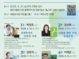 여주시는 오는 6월 12일부터 8월 14일까지 세종도서관 여민홀(1층)에서 '2025 세종 인문학 특강' ‘사회과학 편’을 4회 운영한다. 공공도서관 자료 분류 체계인 KDC(한국십진분류법) 10개 주제(총류~역사)