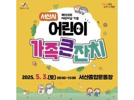 충남 서산시가 가정의 달 5월 제103회 어린이날을 맞아 ‘어린이가족큰잔치’ 행사를 개최, 다채로운 프로그램을 준비 중이라고 23일 밝혔다.제103회 어린이날 행사 어린이가족큰잔치는 오는 5월 3일 오전 9