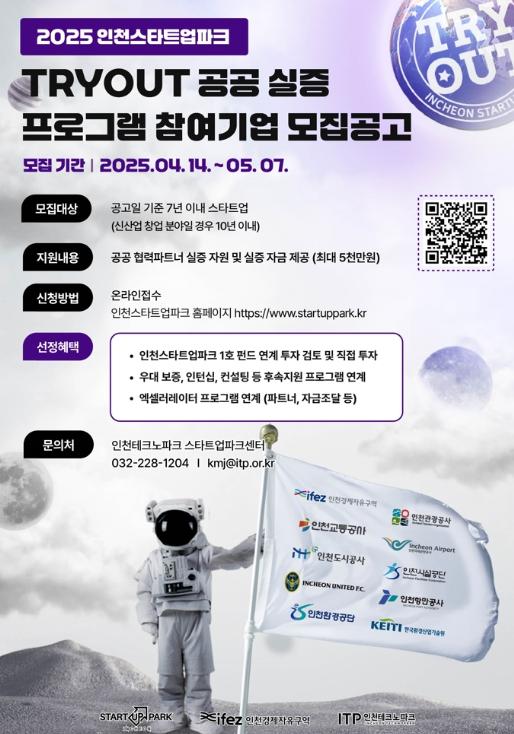 인천항만공사는 지난 14일부터 내달 7일까지 인천스타트업파크와 함께 창업기업 실증 지원 프로그램 ‘2025 트라이아웃 스마트 엑스 씨포트(TRYOUT Smart-X Seaport)’에 참여할 기업을 모집한다고 밝혔다.