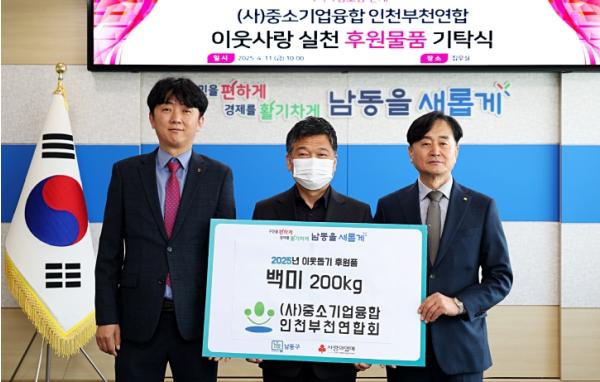 인천시 남동구는 (사)중소기업융합인천부천연합회로부터 취약계층을 위한 백미 200kg(53만 원 상당)을 기탁받았다고 15일 밝혔다.