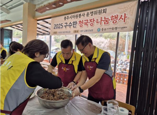 충주시자원봉사운영위원회는 지난 18일 충주 금봉산농원에서 박영찬 운영위원장을 비롯한 운영위원 16명이 참여한 가운데 취약계층을 위한 "2025 구수한 청국장 나눔" 행사를 진행했다.