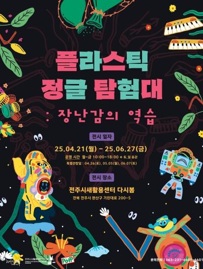 전주시새활용센터 다시봄에서는 21일부터 6월 27일까지 버려진 플라스틱 장난감을 활용한 기획전시 ‘플라스틱 정글탐험대 – 장난감의 역습’을 개최한다.