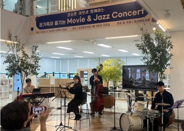 오르빛도서관은 지난 19일 4층 어린이자료실에서 ‘온 가족이 즐기는 무비&재즈 콘서트’를 성황리에 개최했다.