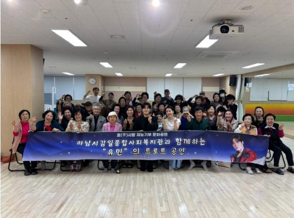 트로트 가수 유민은 지난 18일 오후 2시 30분 하남시감일종합사회복지관(사회복지법인 휴먼복지회 운영) 강당에서 재능기부 효(孝)사랑 문화공연을 진행했다.