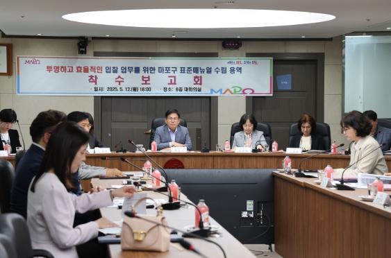 마포구는 5월 12일 오후 4시, 마포구청 8층 대회의실에서 ‘투명하고 효율적인 입찰 업무를 위한 마포구 표준 매뉴얼 수립 용역 착수보고회’를 개최했다.