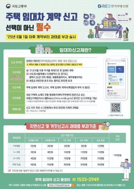 제도의 안정적 정착을 위해 오는 31일까지 4년간의 계도기간을 두고 과태료를 면제해 왔으나 6월 1일부터는 미신고·지연 신고 시 최대 30만 원, 허위 신고 시 100만 원의 과태료를 부과한다.