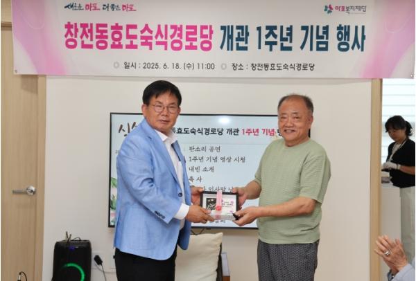 박강수 마포구청장은 6월 18일 오전, 창전동 효도숙식 경로당 2층 생활관을 찾아 ‘창전동 효도숙식 경로당’ 개관 1주년 기념을 축하했다.