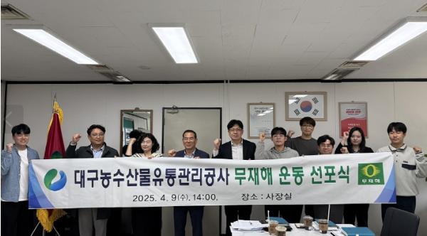 대구농수산물유통관리공사은 4월 9일 중대재해사고를 예방하고자 무재해 운동 선포식을 실시했다.