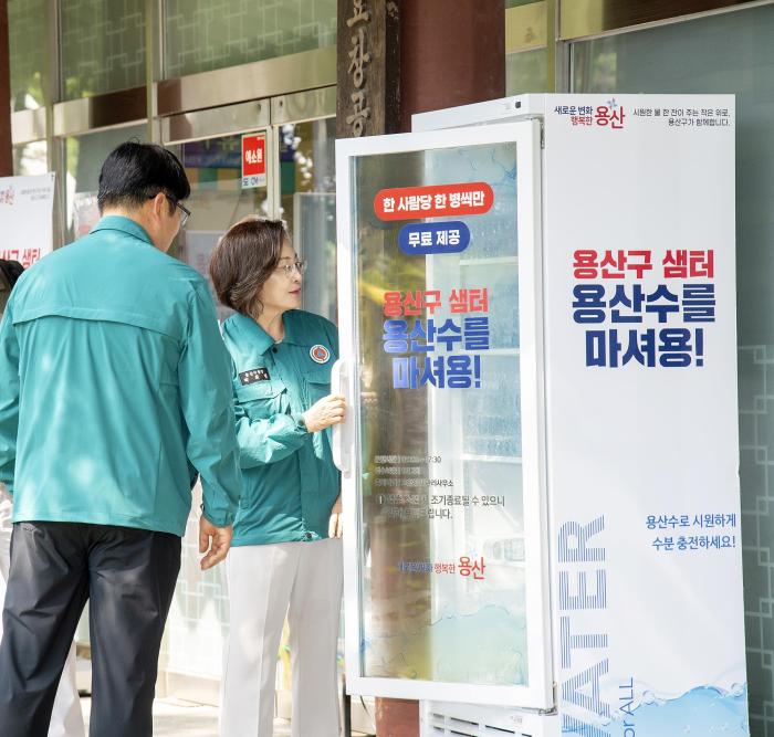 용산구는 지난 7월, 기존 6곳에서 운영하던 ‘생수 자판기’를 총 9곳으로 확대했다. 정류장과 주민센터 등 생활권 중심에 설치된 이 자판기 또는 냉장고형 샘터에서는 시원한 생수를 무상 제공한다. 지난달 한 달 동안만도 약 3만 9000병이 소진됐을 정도로 반응은 뜨겁다. 생수자판기는 꿈나무종합타운, 중경고등학교, 이촌2동 주민센터, 녹사평역 광장 등 4곳에서 운영한다. 자판기 1대당 하루 600병의 생수가 비치된다.