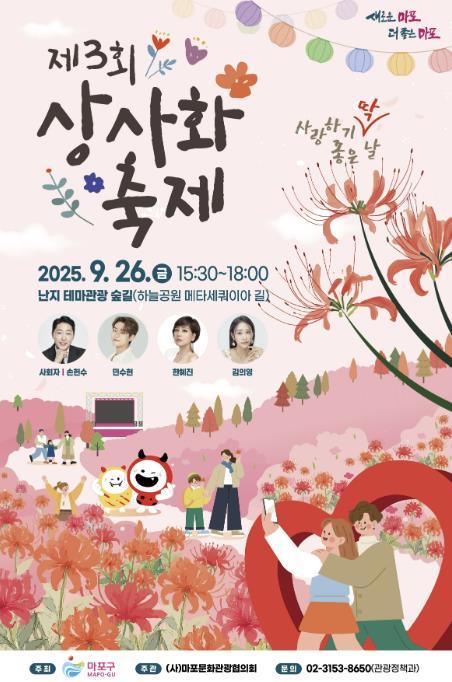 마포구는 9월 26일 난지 테마관광 숲길에서 ‘사랑하기 딱 좋은 날’이라는 주제로 (사)마포문화관광협의회 주관 ‘제3회 마포구 상사화 축제’를 개최한다.