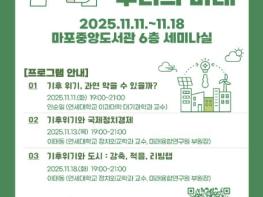 한편 마포중앙도서관에서는 같은 달 11월 11일부터 18일까지 ‘기후 위기와 우리의 미래’를 주제로 ‘하반기 마중도 인문학 살롱’을 운영한다.
