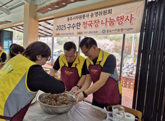 • 충주시자원봉사운영위원회는 지난 18일 충주 금봉산농원에서 박영찬 운영위원장을 비롯한 운영위원 16명이 참여한 가운데 취약계층을 위한 "2025 구수한 청국장 나눔" 행사를 진행했다.