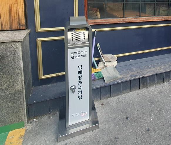 ▶영등포구: 식당 밀집 지역 등에 단독형 수거함을 설치하며, 담뱃불을 비벼 끌 수 있는 타공판과 일반 쓰레기 투입을 막는 특수 설계를 적용해 기능성을 강화했다.